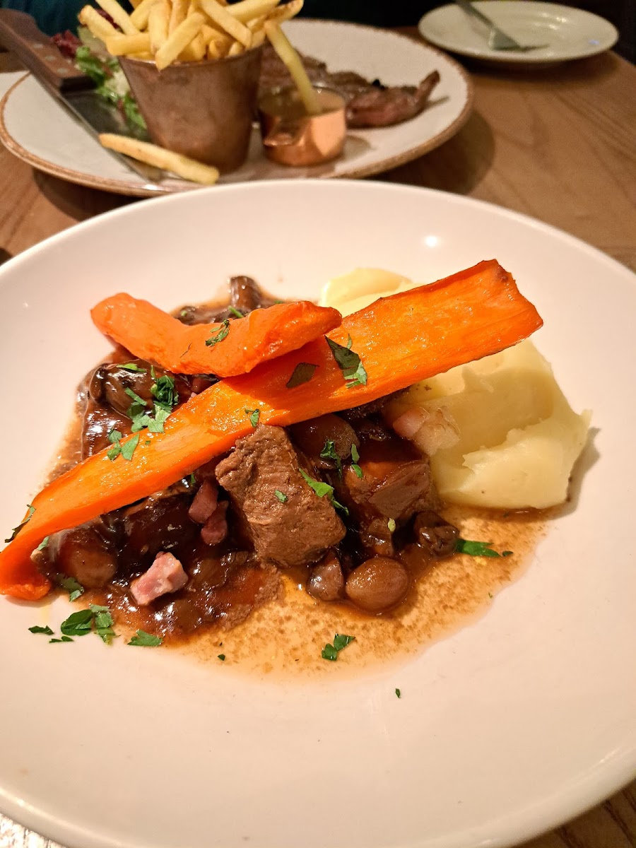 Start with a classic French Onion Soup, a perfect blend of rich, savory broth and melted cheese. For something a bit more indulgent, try the Boeuf Bourguignon, slow-cooked beef in red wine sauce, or the decadent Crème Brûlée to end your meal on a sweet note. The Sticky Toffee Pudding with Vanilla Ice Cream is another standout dessert that’s a crowd favorite. For a lighter bite, the Calamari or Sea Bass might be just what you’re craving.