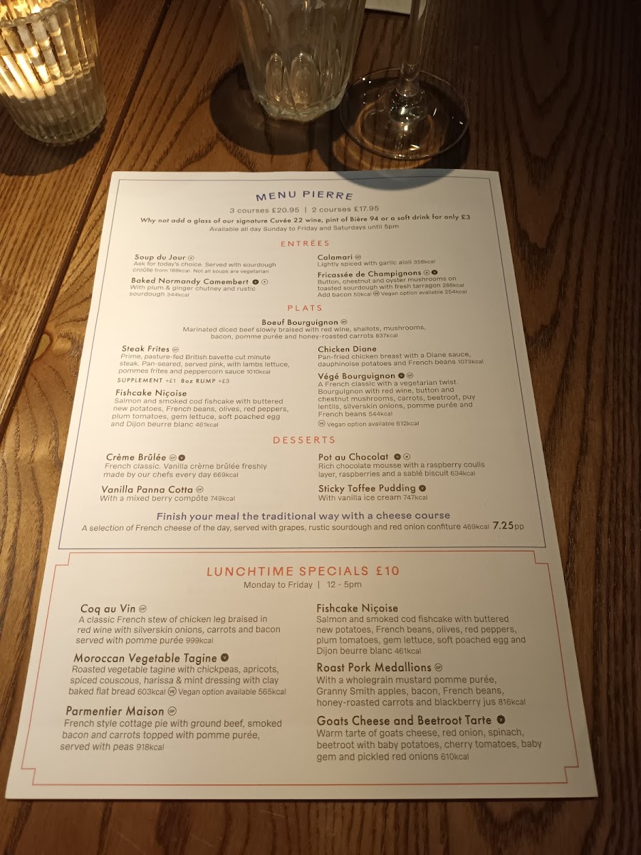 Compared to other bistro-style establishments in Derby, Bistrot Pierre stands out for its consistency, elegant setting, and polished service. Whether you’re visiting for a casual lunch or a romantic dinner, the Bistrot Pierre - Derby Menu offers a sophisticated taste of France, delivered with local charm and excellent value.